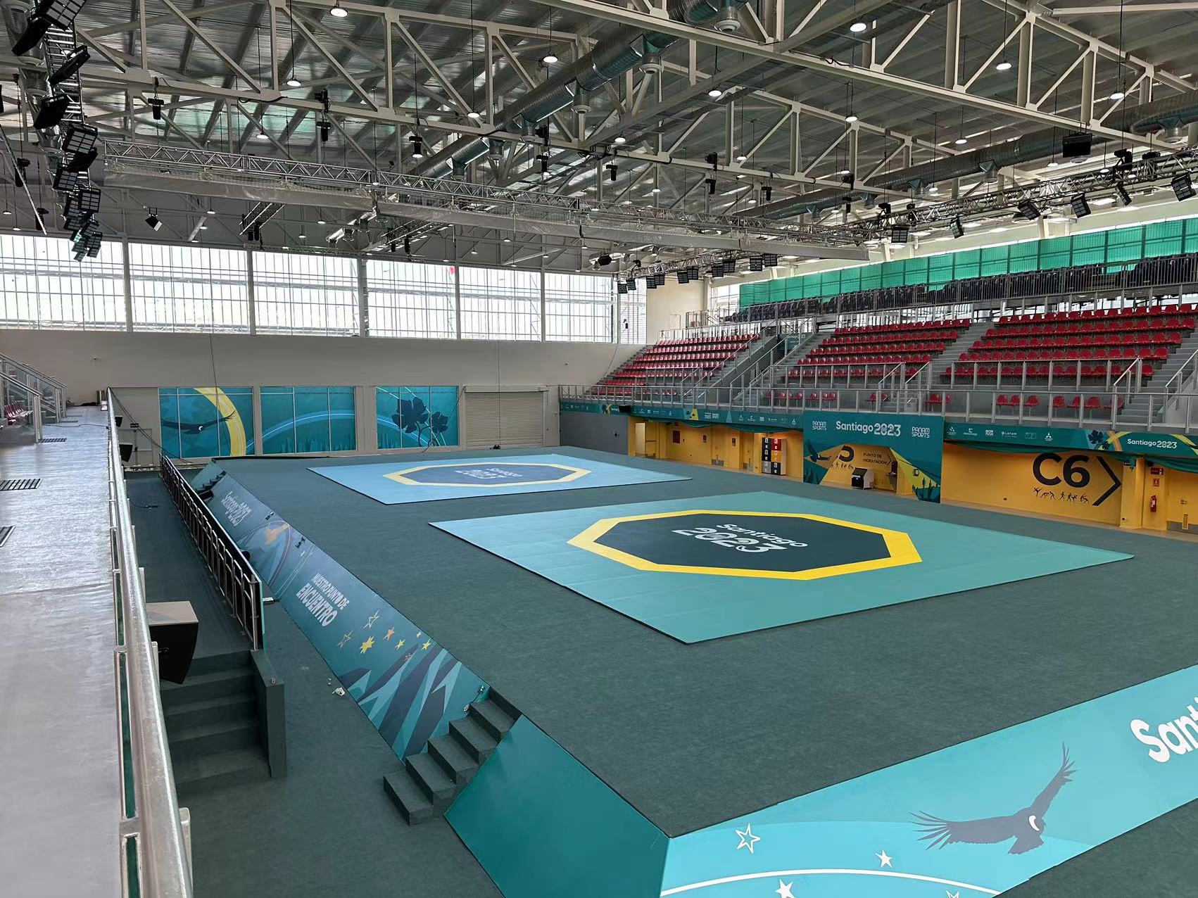 2023年10月20日至11月26日,泛美运动会和残疾人赛事将在智利首都圣地亚哥举办,共有来自41个国家的约9000名运动员参赛。pg电子体育提供的柔道、摔跤、空手道、跆拳道、拳击、残疾人柔道、残疾人跆拳道、盲人足球、铁人三项、皮划艇等器材已亮相泛美运动会赛场,正在紧张有序安装中。