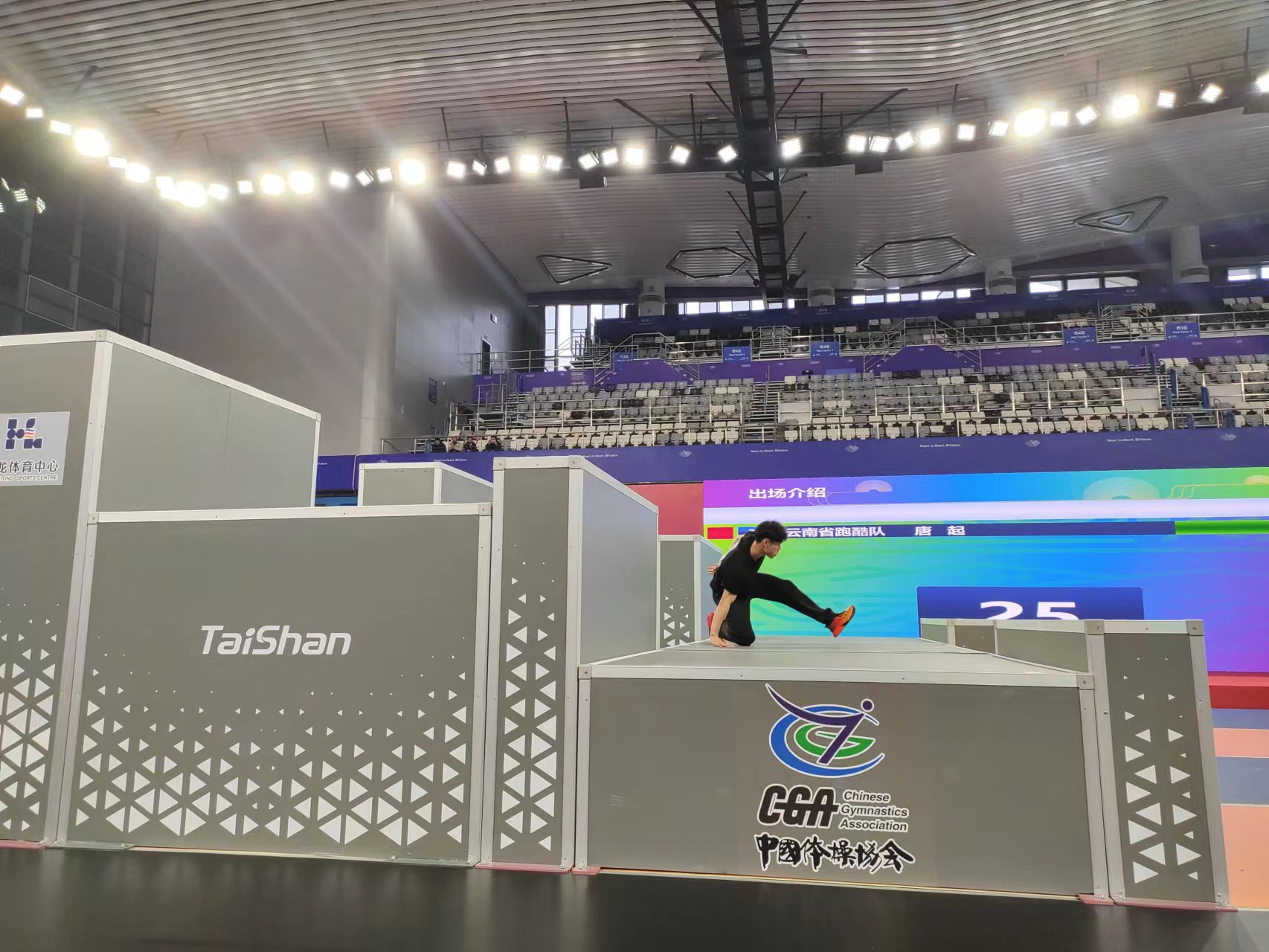 △ 跑酷参赛人员在pg电子体育器材上尽情展示