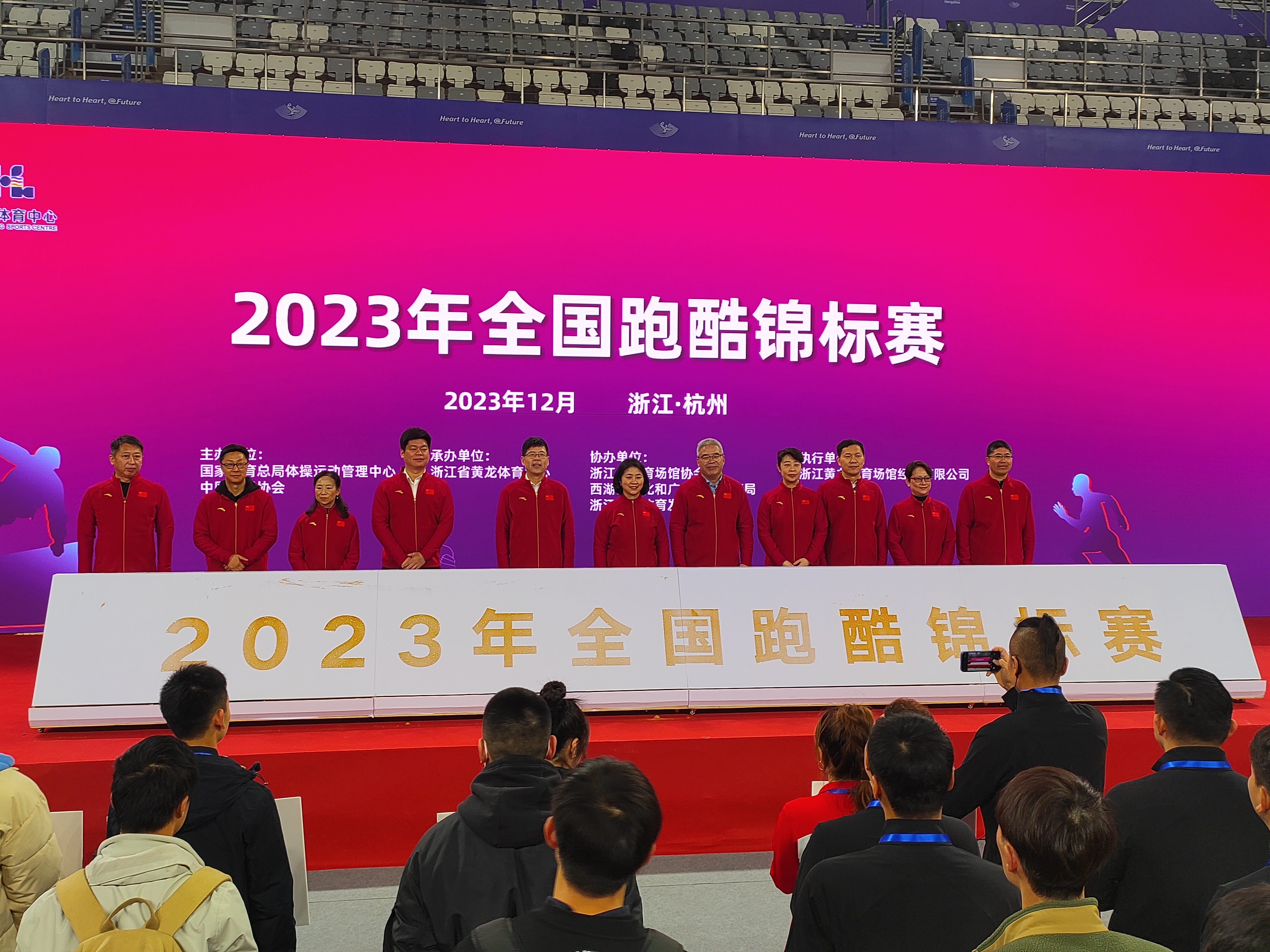 【概要描述】△2023年全国跑酷锦标赛开幕式照片 12月12日上午,由国家体育总局体操运动管理中心、中国体操协会主办,浙江省黄龙体育中心承办的2023年全国跑酷锦标赛在浙江黄龙体育中心游泳跳水馆开幕。国家体育总局体操运动管理中心副主任冯玉娟,浙江省体育局副局长、一级巡视员李华,杭州市西湖区区委常委、常务副区长高卫星,国家体育总局体操运动管理中心事业发展部主任徐国敏,浙江省黄龙体育中心党委书记、主任沈斌等领导出