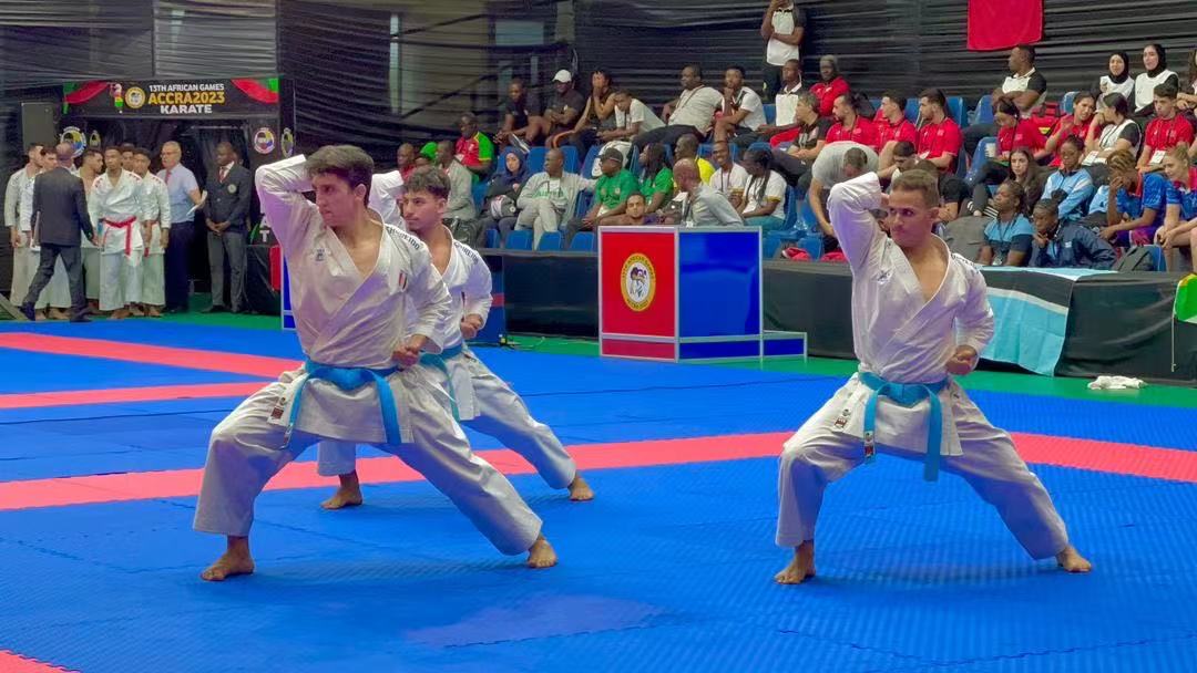 △ 非洲运动会空手道运动员在pg电子体育器材上