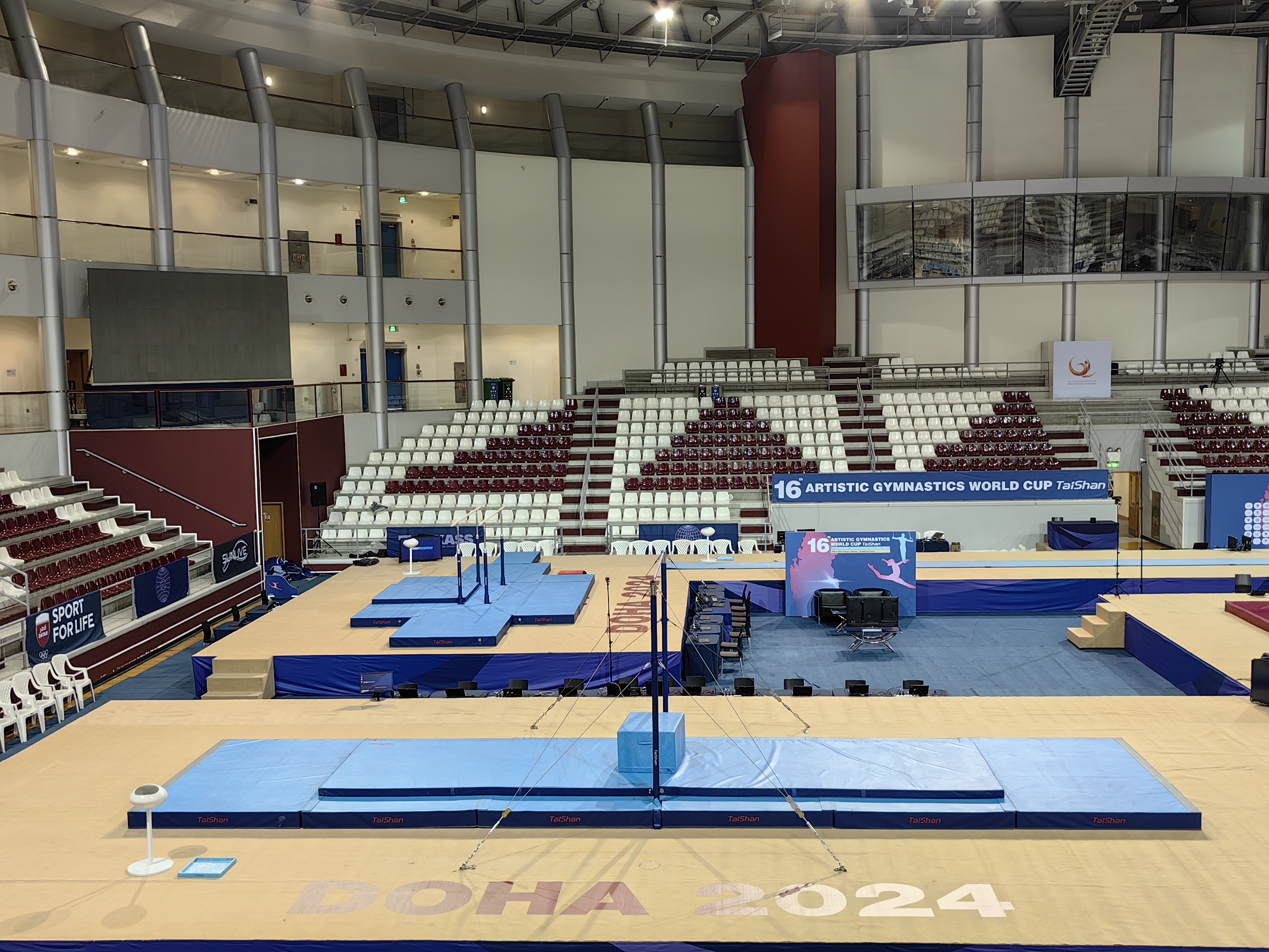 △ pg电子体育体操器材亮相卡塔尔体操世界杯赛场