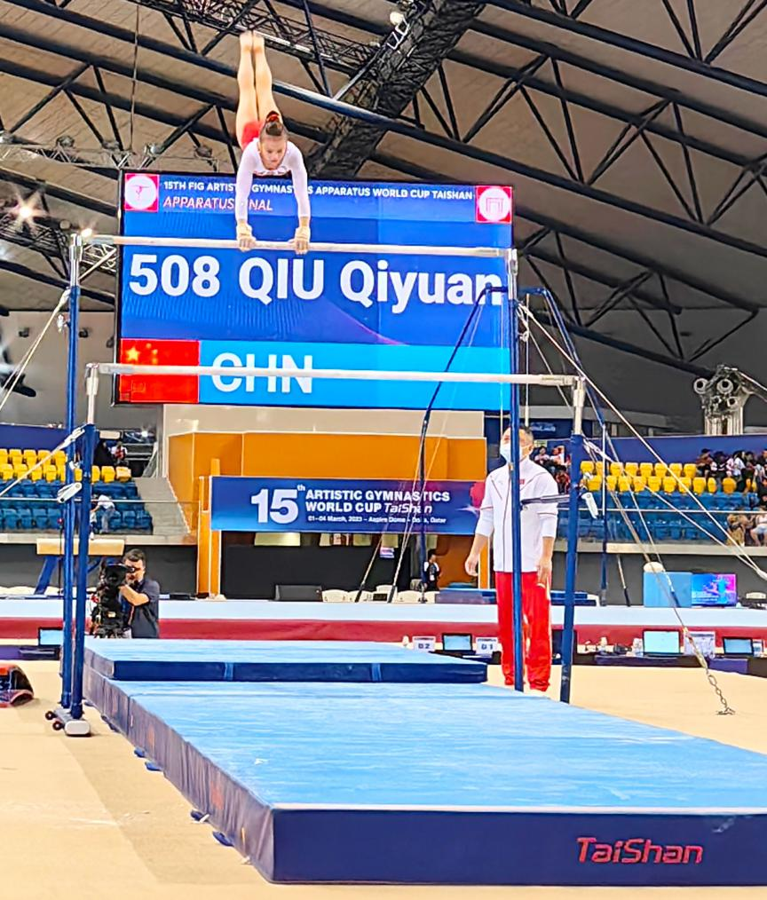 资格赛排名第一的中国小将邱祺缘在女子高低杠项目中位列第6名,陈治龙获得男子自由操第8名,尹德行获得男子鞍马第8名。